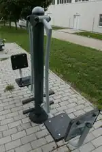 Legs | A fitness station targeting quadriceps muscles. Legs are bending in the knees. |