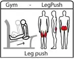 Legs | Leg press also known as leg push. Squats in a sitting position. |