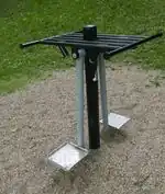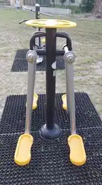 Legs | A fitness station with two swinging feet platforms and support bar for hands. |