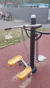 Stretching | An outdoor leg stretching fitness equipment is designed for enhancing lower body flexibility. It offers platforms to place feet, aiding in gentle stretches for muscles like hamstrings or quadriceps. |
