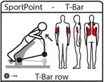 Pull | Similar to bent_over_row. T-Bar Row, also known as Incline Lever Row. Often equipped with weights.