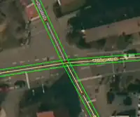 The following examples show the range of sidewalk/crossing mapping of an intersection from very detailed to less detailed.