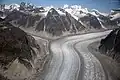 Valley glaciers are glaciers at the bottom of a single valley flowing downward | The Mer de Glace in the Mont Blanc massif |