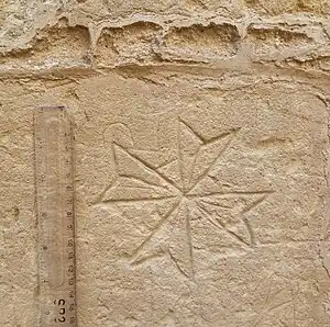 | pilgrims_cross | Etched into wall by pilgrims along pilgrim routes or at other Christian sites. In a prison context, use the other types of crosses instead. | ![]() |