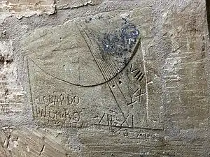 | sundial | Sundials etched into walls can sometimes be found around churches or prisons. | ![]() |