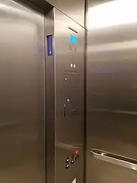 An elevator with a handrail in the cabin; which thus has handrail=yes