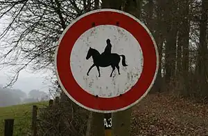 horse=no - ↑ The Vienna Convention on Road Signs and Signals uses the term "riders on horseback"