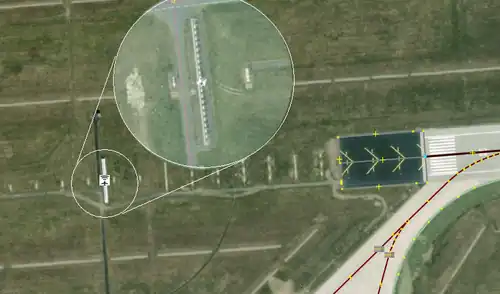 On accurate satellite images you can see a row of white dipole antennas.