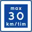 Advisory speed limits are indicated by square blue signs with a white border, with the text "max XX km/tim". They are usually used on residential roads in rural neighbourhoods, and a common value is 30 km/h on a 50 km/h road.