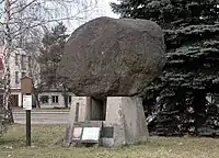 A stone with an inscription, picture, or similar. |