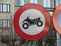 In some countries, restrictions for motorcycles also apply to other single tracked motorvehicles unless they are exempted with additional signs.