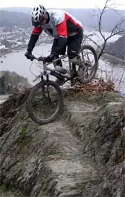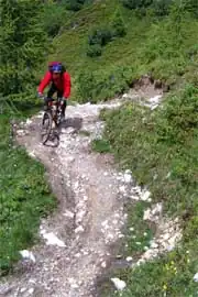 Variable Surface, tight corners, small steps, surface is rocks, earth or grass. Very good balance and steady, round pedalling needed. Without very good skills mtbikers have to push their bike uphill | <25% | <30% | Fistsize loose rocks, roots and branches or rocky surface |