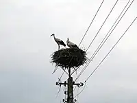 nest_platform=yes) on a power pole selected by storks, protecting both birds and electric infrastructure.Tagging