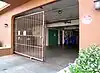 A sliding gate of a garage that is partially open. (Note that the image shows a private garage which in reality is probably not regularly open nor legally accessible) |