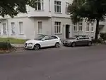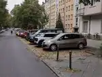 Vehicles have to park at a 90° angle so that the front or back of the vehicle is pointing straight towards the road centerline. |