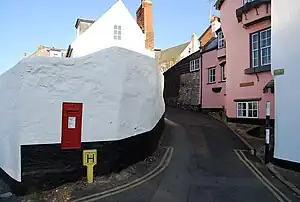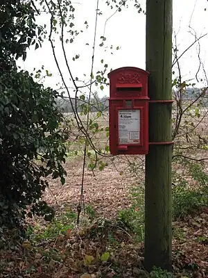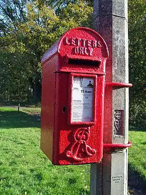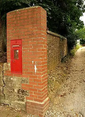 The box is mounted within a stone pillar. The pillar is either freestanding or significantly larger than the wall in which it is surrounded | ![]() |