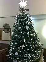 A Christmas tree outline? | Christmas trees are seasonally harvested for Christian festivities, used by many as a celebration. |