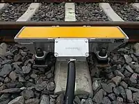 | Indicates that a railway is equipped with PZB (Punktförmige Zugbeeinflussung). |