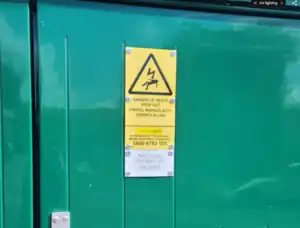 Many substations have a plate on their outer perimeter that displays the substation's name and site number.