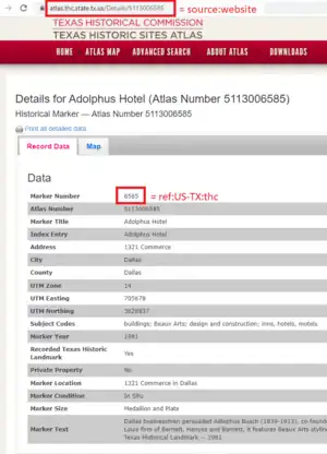 This key references a Texas Historical Commission (THC) plaque by it's marker number.