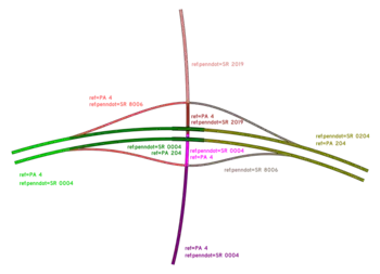 Traffic routes are tagged with the full four digits, including all leading zeros (e.g. ref:penndot=SR 0095 for I-95). Where a concurrency exists, the SR designation is based on the lowest numbered route of the highest "priority" present. For example, US 22/322 in Dauphin County is SR 0022, while I-78/US 22 in Berks County is SR 0078. Interstate > US Route > State Route. There are two exceptions to this rule in the state: PA 581/US 11 near Harrisburg is SR 0581, not SR 0011 (perhaps a holdover from original plans for I-581), and the Pennsylvania Turnpike from New Stanton to Breezewood (I-70/76) is SR 7076, not SR 7070 (likely due to PennDOT not owning the Turnpike and wanting to keep their reference number for it as simple as possible).