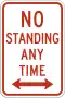 No parking and no stopping are restrictions that are commonly used worldwide with similar traffic signs. Where parking is not allowed, stopping is still possible (e.g. to drop off or pick up someone or something). In contrast, with a no stopping restriction, a vehicle is not allowed to stop at all (unless due to traffic conditions or an emergency). In a few countries (USA, parts of Canada, Philippines), there is also a no standing restriction (also called no waiting in some places, but don't mix it up with the meaning of "no waiting" in the UK, which is used synonymously with "no parking"). The exact meaning of these categories may vary from country to country and should always be used according to local regulations and signage.