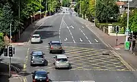 A pattern on a junction that can be driven over but it is not allowed to stop within it (see also box junction).