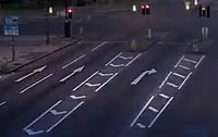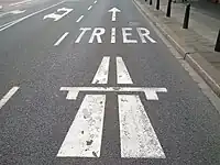 | Road markings, i.e. colored markings on the surface of traffic areas for providing information and guidance for traffic. |
