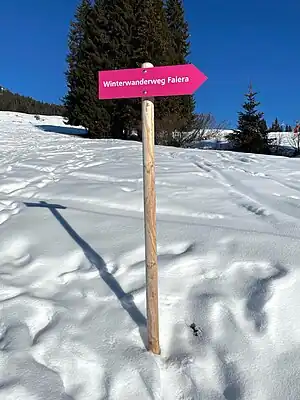 Direction sign which is related to winter hiking / snow hiking.