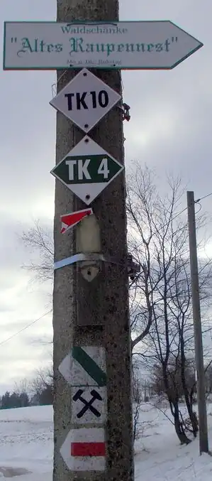 Direction sign which is related to hiking |