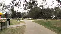 Trail well paved. Exposed areas well secured. strolling (or possibly very easy hiking).