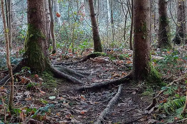 Trail with minor obstacles (roots).