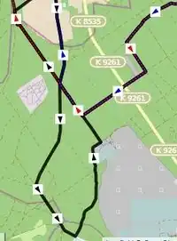 | Specifies that a foot, hiking, bicycle or riding route is signposted, and the signs are only visible from one direction. |