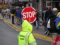 A traffic junction directed by a traffic officer. Sometimes there is a small platform on which the officer can stand.