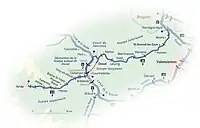de facto | An established (often signposted) route over multiple highways for a given transport mode (hiking, cycling, bus or motorized traffic) | ![]() | ||