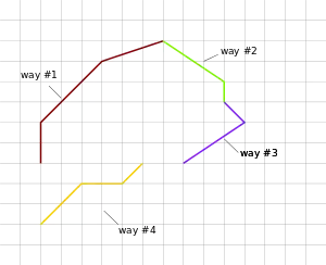 in use | A discontiguous series of unclosed ways that semantically represents a single physical object. | ![]() | ||