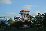 Riders are dropped down a near vertical slide and into an inclined loop