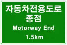 표지판을 통해 표시됩니다. 고속도로(고속국도)는 highway=motorway 태그를 사용하여 motorroad 태그로는 표현하지 않습니다. 아래 예고표지를 통해 자동차전용도로가 끝나기 전 미리 안내됩니다.