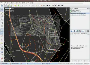- Trace over the major streets in the point data, for trails that have only one tiny amount of points, look if you can see some streets in the landsat and yahoo wms layers.