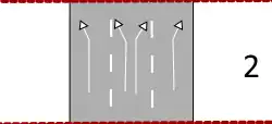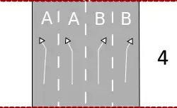 1 and 2 can both take motor_vehicles, but lanes 3 and 4 cannot.