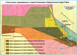 - ↑ 1.0 1.1 “Рассмотрены вопросы совершенствования административно-территориального устройства велаятов” (in ru). Государственное информационное агентство Туркменистана (TDH) - Туркменистан сегодня. 22 October 2022.