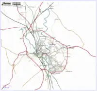 The geometric layout of Karlsruhe is illustrated in SlowRider's map, rendered by Joto using Osmarender |