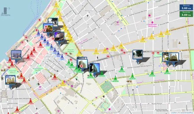 The PRODEPA state agency created an online map of the city of Belém, State of Pará, Brazil, showing the location of a dozen of processions, and of points of interest, temporary medical facilities and blocked streets, for the “Círio de Nazaré” religious festival, gathering more than 2 million people during 2 weeks in October 2017.