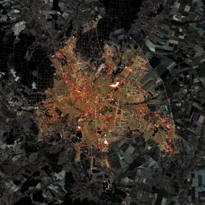 Gontsa is creating a series of images merging OpenStreetMap data on top of Landsat satellite imagery. This image shows Kharkiv, Ukraine, during the autumn. You can see other works of Gontsa on his Instagram page.