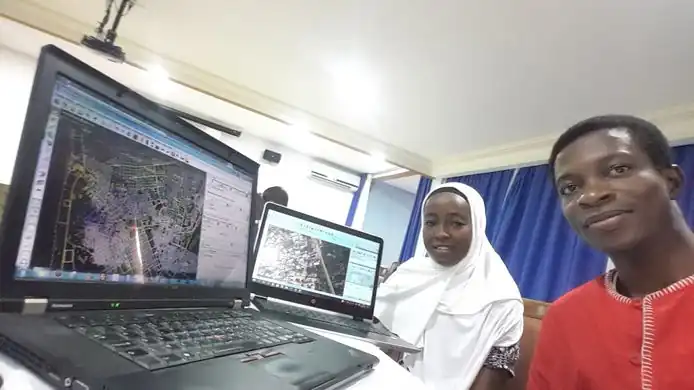 Richard Folly visiting Fatima Alher and the OSMGirls, a multilingual mapping group of young African women (based in Comoros, Côte d'Ivoire, France, Ghana, Madagascar, Malawi, Mozambique, Niger, South Africa, Tanzania, Togo and Uganda).