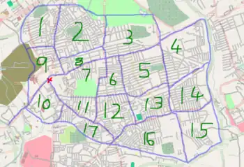 When we converged on the pub, there were more people than expected! The areas we managed to cover were strangley sporadic patches in the North, and the South, and less in the middle, as illustrated below