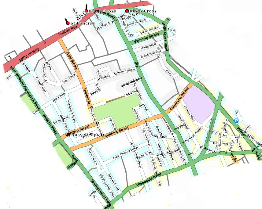 University of London area, around Guildford street | Ojw and family. Believed to be 100% complete (all roads, paths, alleys, parks, pubs and oneway systems) |
