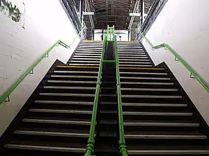 À placer au croisement de l'emprise de la station et du sommet des escaliers/au niveau de la porte | |