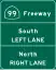 | File:MUTCD-CA G21-1.svg | G21-1 | Advance Lane Assignment | destination:ref:lanes=CA 99 South|CA 99 Northdestination:ref=I 5 South on the ramp to the leftdestination:ref=I 5 North on the ramp to the right