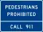 | G81-67 | PEDESTRIANS PROHIBITED CALL 911 | foot=no